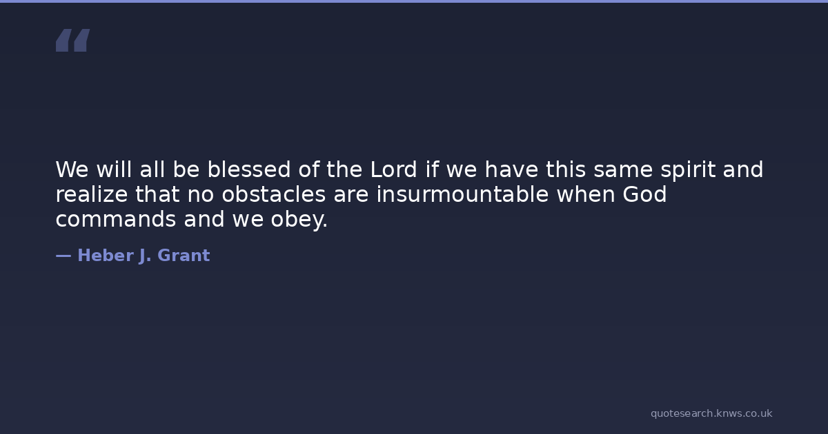 We will all be blessed of the Lord if we have this same spirit and realize that no obstacles are insurmountable when God commands and we obey.