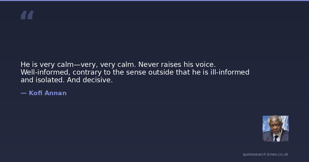 He is very calm—very, very calm. Never raises his voice. Well-informed, contrary to the sense outside that he is ill-informed and isolated. And decisive.