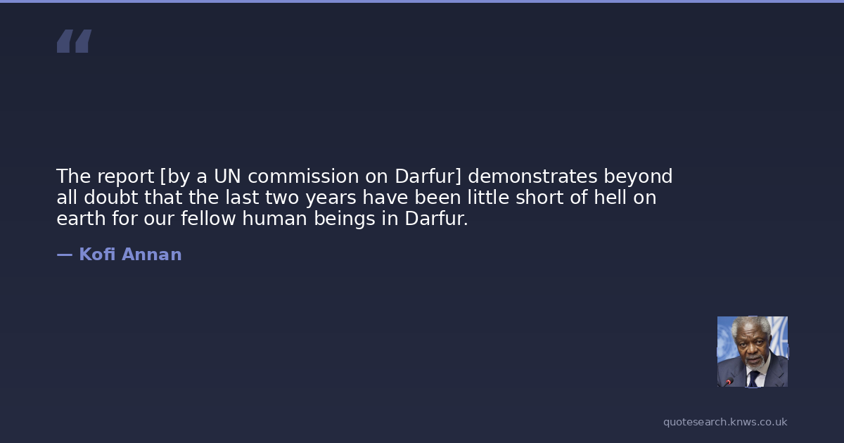 The report [by a UN commission on Darfur] demonstrates beyond all doubt that the last two years have been little short of hell on earth for our fellow human beings in Darfur.
