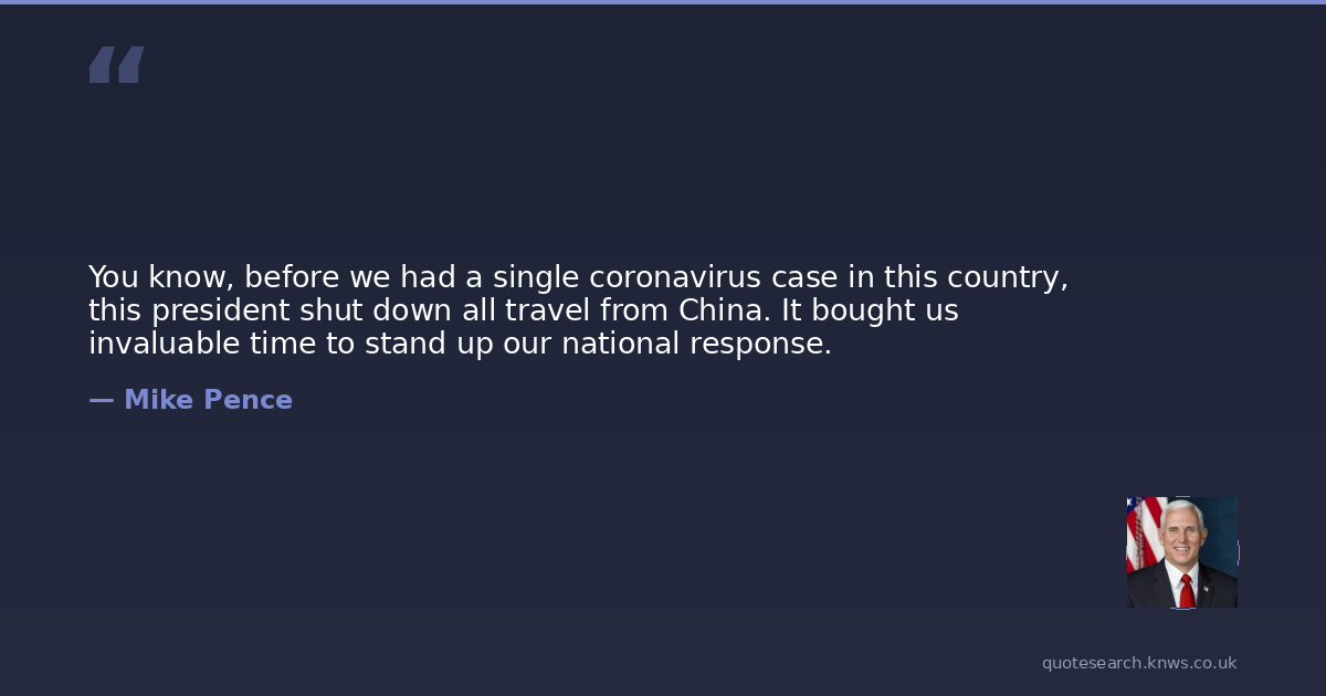 You know, before we had a single coronavirus case in this country, this president shut down all travel from China. It bought us invaluable time to stand up our national response.