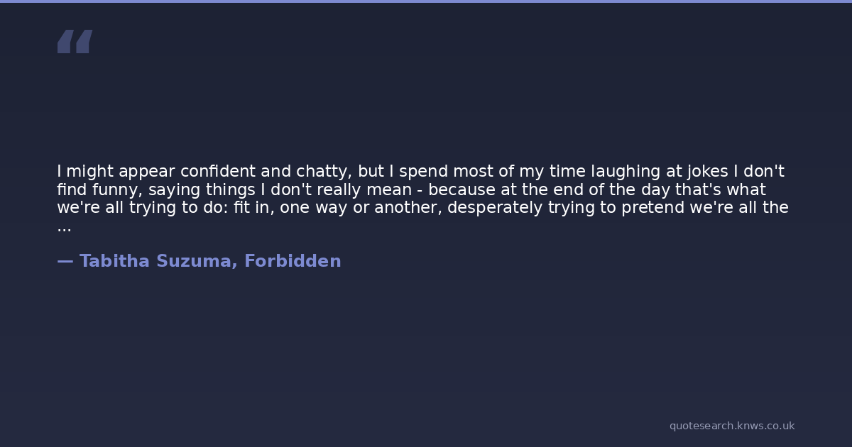 I might appear confident and chatty, but I spend most of my time laughing at jokes I don't find funny, saying things I don't really mean - because at the end of the day that's what we're all trying to do: fit in, one way or another, desperately trying to pretend we're all the same.