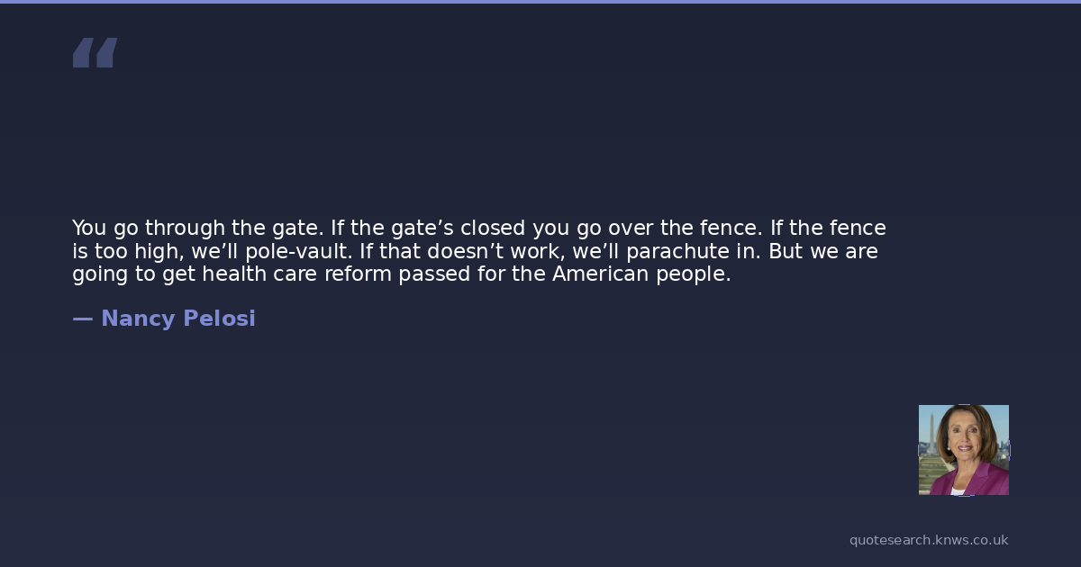 You go through the gate. If the gate’s closed you go over the fence. If the fence is too high, we’ll pole-vault. If that doesn’t work, we’ll parachute in. But we are going to get health care reform passed for the American people.