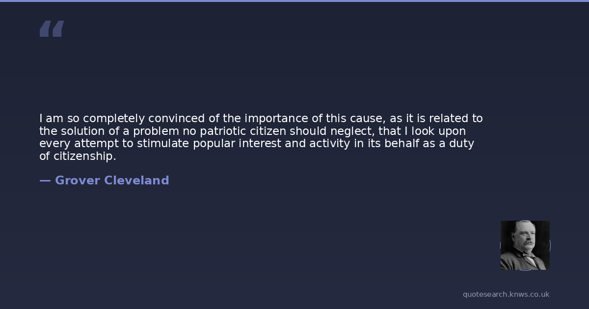 I am so completely convinced of the importance of this cause, as it is related to the solution of a problem no patriotic citizen should neglect, that I look upon every attempt to stimulate popular interest and activity in its behalf as a duty of citizenship.