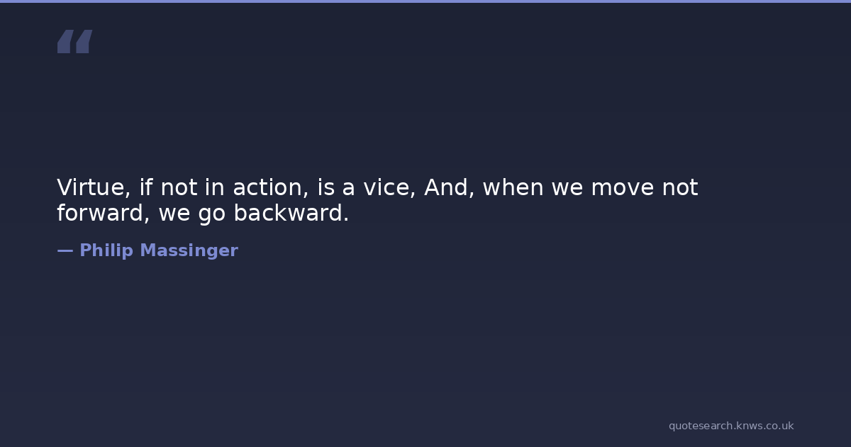 Virtue, if not in action, is a vice, And, when we move not forward, we go backward.
