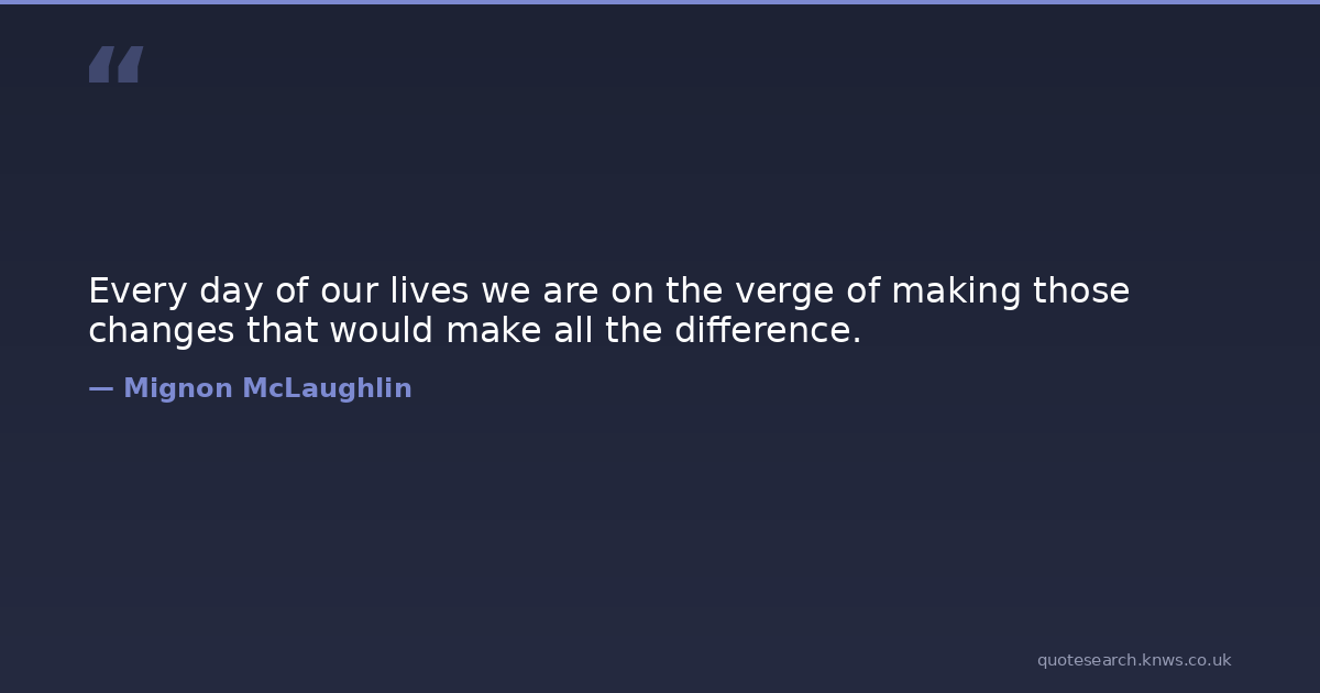 Every day of our lives we are on the verge of making those changes that would make all the difference.