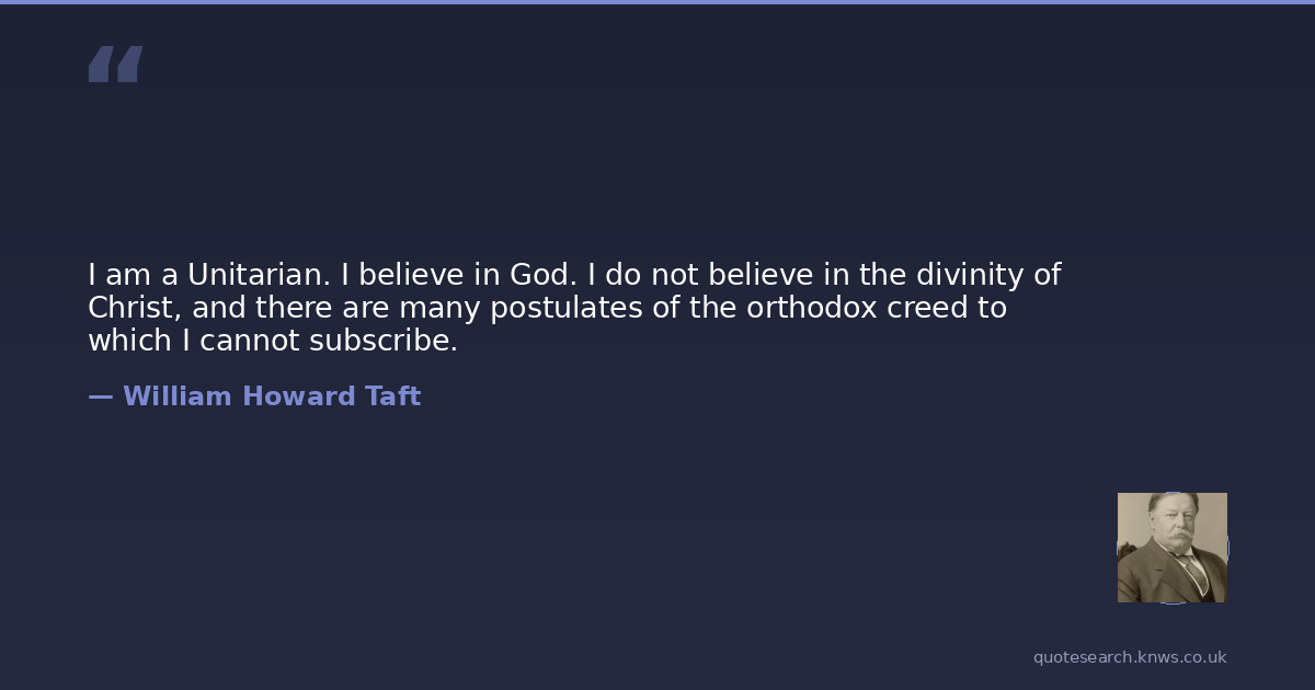 I am a Unitarian. I believe in God. I do not believe in the divinity of Christ, and there are many postulates of the orthodox creed to which I cannot subscribe.