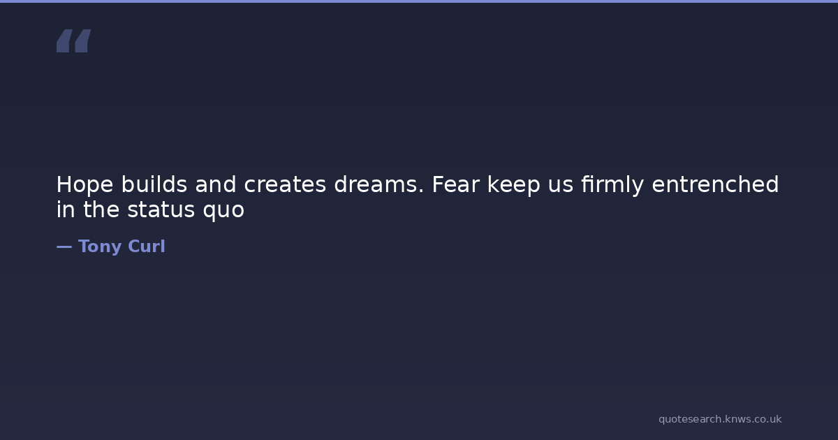 Hope builds and creates dreams. Fear keep us firmly entrenched in the status quo