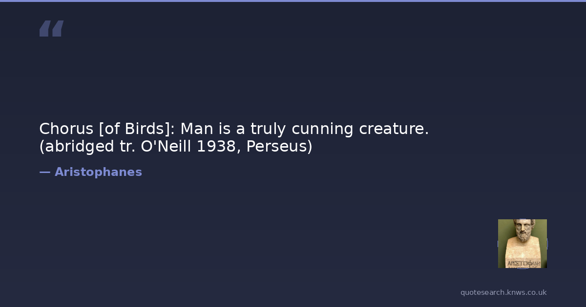Chorus [of Birds]: Man is a truly cunning creature. (abridged tr. O'Neill 1938, Perseus)