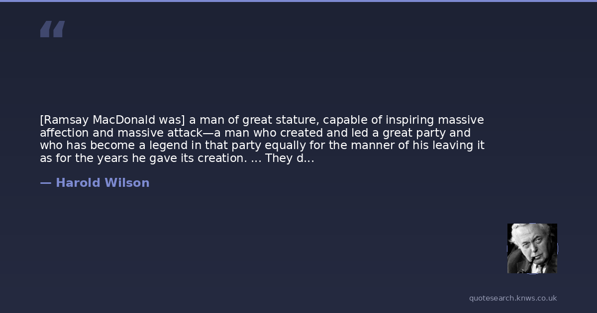 [Ramsay MacDonald was] a man of great stature, capable of inspiring massive affection and massive attack—a man who created and led a great party and who has become a legend in that party equally for the manner of his leaving it as for the years he gave its creation. ... They drew their inspiration from Merrie England and dry statistics, they sang their widely differing battle songs, and Ramsay MacDonald had to fashion from the strains of Edward Carpenter's 'England Arise', from the 'Internationale', from 'Jerusalem', from the 'Red Flag', from 'These Things Shall Be', a new harmony. In 1906 in MacDonald's fortieth year, he saw the victory—the dawn of the new era.