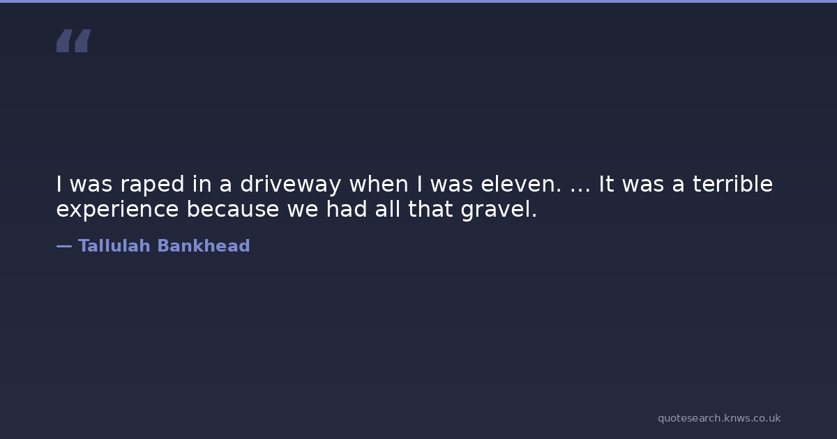 I was raped in a driveway when I was eleven. … It was a terrible experience because we had all that gravel.