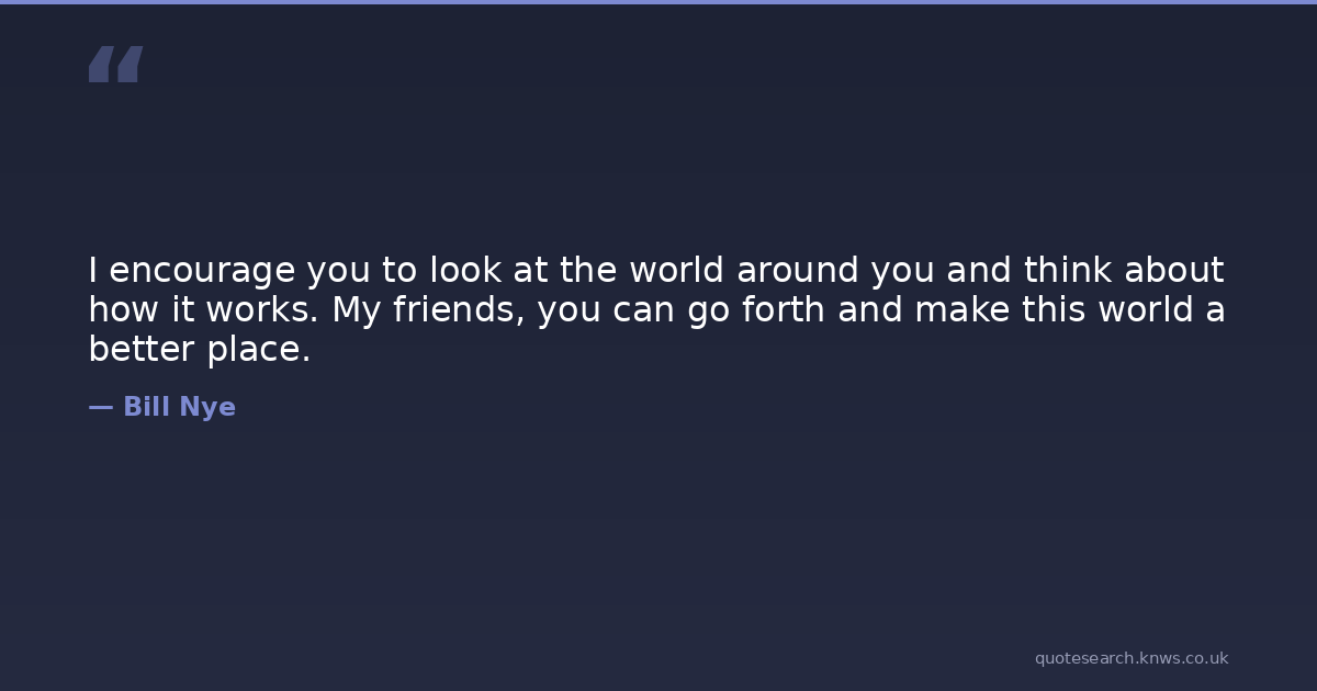 I encourage you to look at the world around you and think about how it works. My friends, you can go forth and make this world a better place.