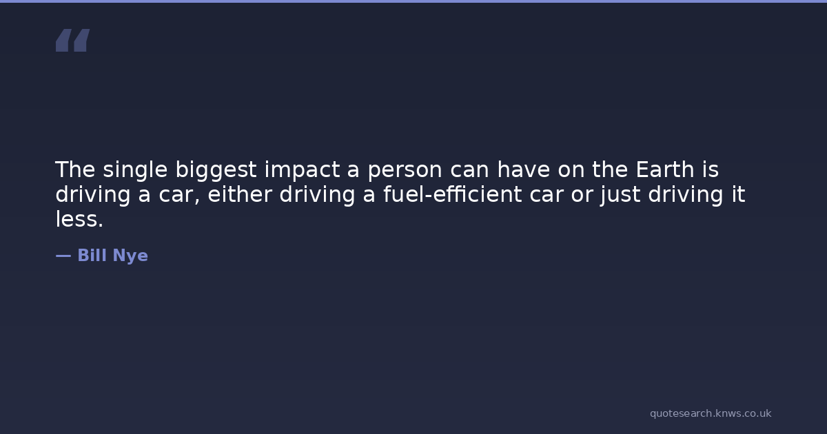 The single biggest impact a person can have on the Earth is driving a car, either driving a fuel-efficient car or just driving it less.