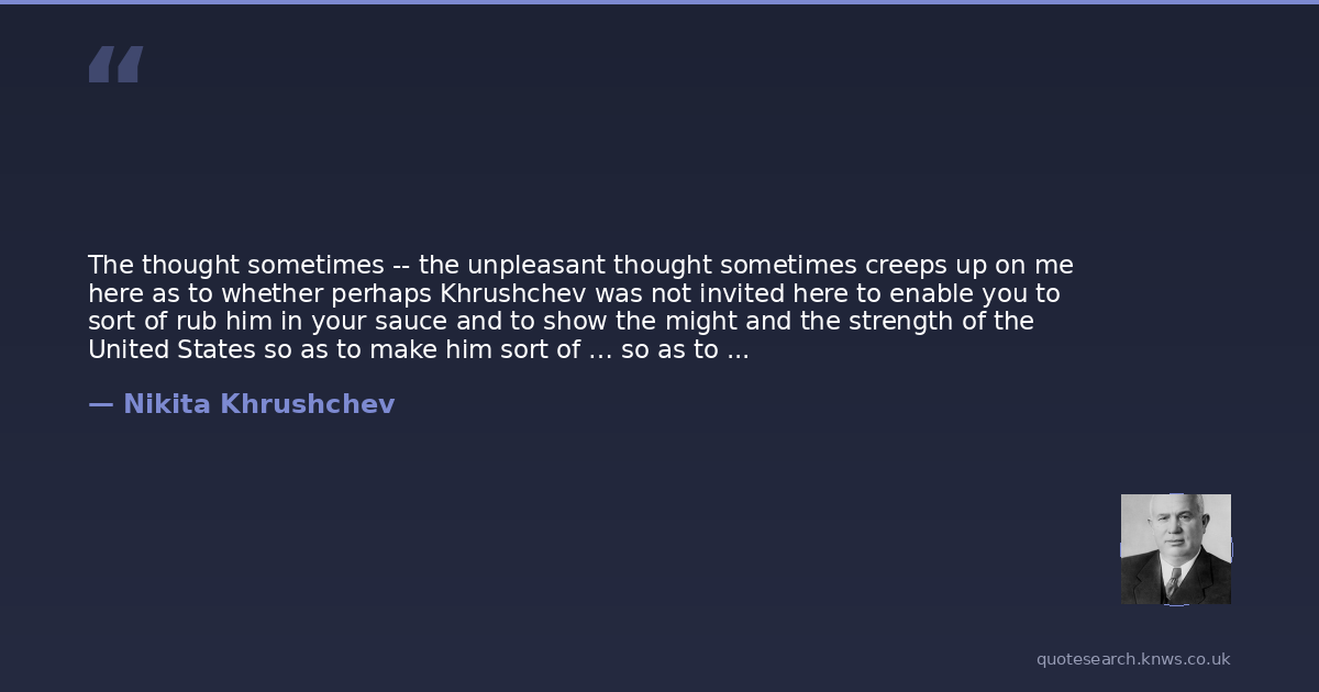 The thought sometimes -- the unpleasant thought sometimes creeps up on me here as to whether perhaps Khrushchev was not invited here to enable you to sort of rub him in your sauce and to show the might and the strength of the United States so as to make him sort of … so as to make him shaky at the knees. If that is so, then if I came -- if it took me about 12 hours to get here, I guess it'll just -- it'll take no more than about 10½ hours to fly back.
