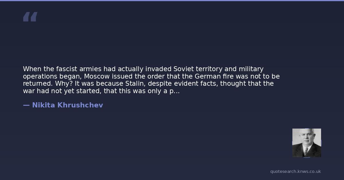 When the fascist armies had actually invaded Soviet territory and military operations began, Moscow issued the order that the German fire was not to be returned. Why? It was because Stalin, despite evident facts, thought that the war had not yet started, that this was only a provocative action on the part of several undisciplined sections of the German Army, and that reaction might serve as a reason for the Germans to begin the war.