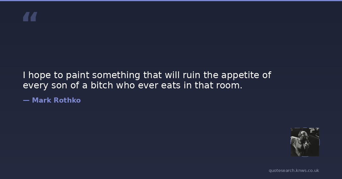 I hope to paint something that will ruin the appetite of every son of a bitch who ever eats in that room.