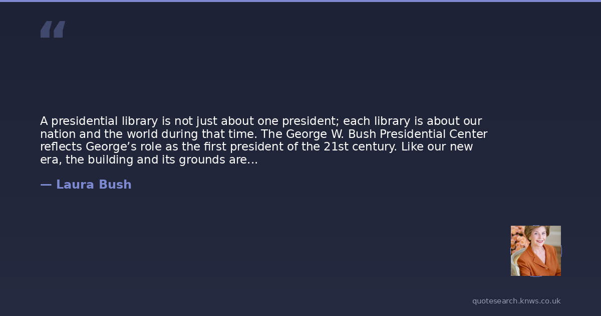 Laura Bush was a contemporary first lady of the united states from 2001 to 2009. Laura Lane Welch Bush is an American educator who was the first lady of the United States from 2001 to 2009 as the wife of George W. Bush, the 43rd president of the United States. Read more on Wikipedia →