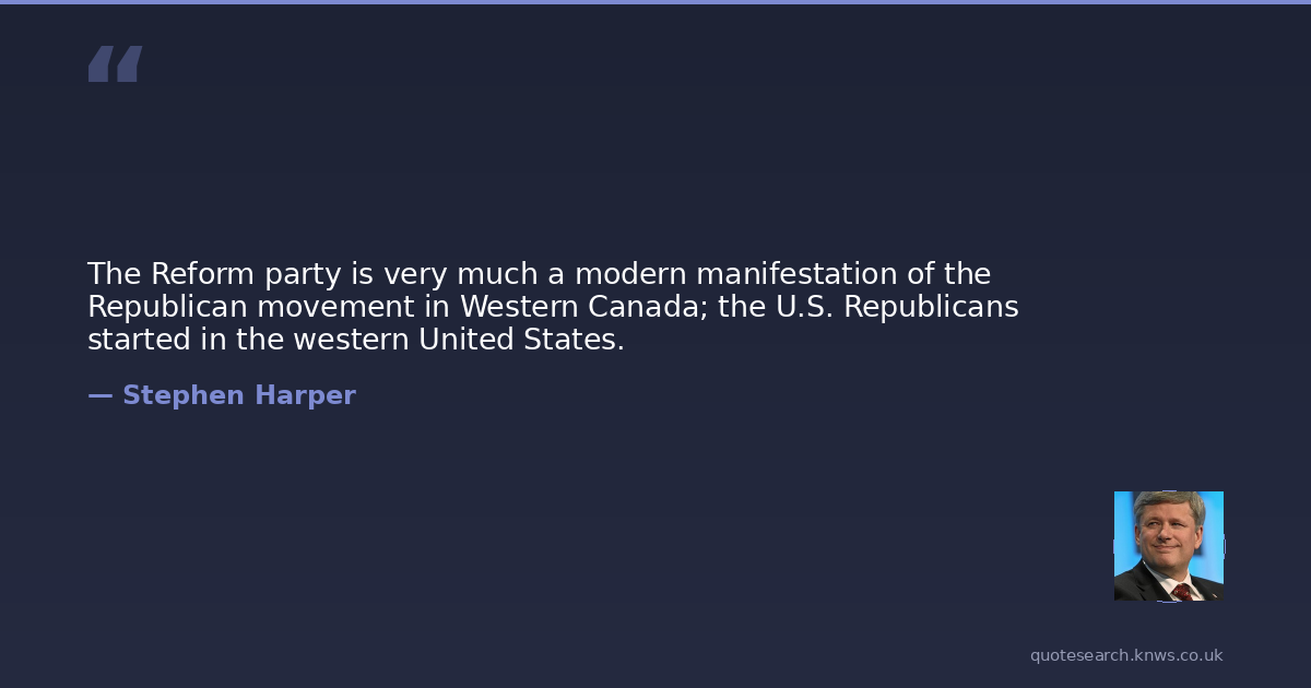 The Reform party is very much a modern manifestation of the Republican movement in Western Canada; the U.S. Republicans started in the western United States.
