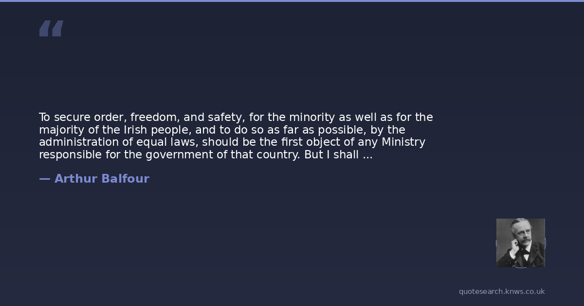 To secure order, freedom, and safety, for the minority as well as for the majority of the Irish people, and to do so as far as possible, by the administration of equal laws, should be the first object of any Ministry responsible for the government of that country. But I shall resist to the uttermost any attempt to loosen the connection, which has subsisted so long between Ireland and Great Britain, under whatever disguises that attempt may be made.