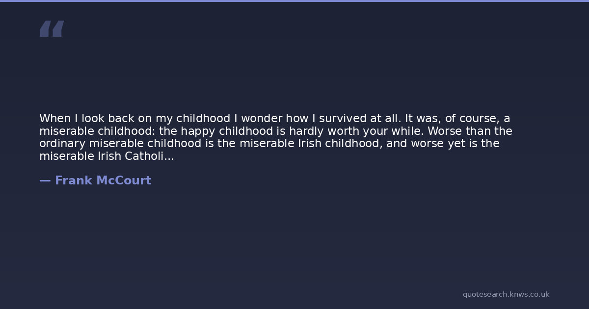 When I look back on my childhood I wonder how I survived at all. It was, of course, a miserable childhood: the happy childhood is hardly worth your while. Worse than the ordinary miserable childhood is the miserable Irish childhood, and worse yet is the miserable Irish Catholic childhood.