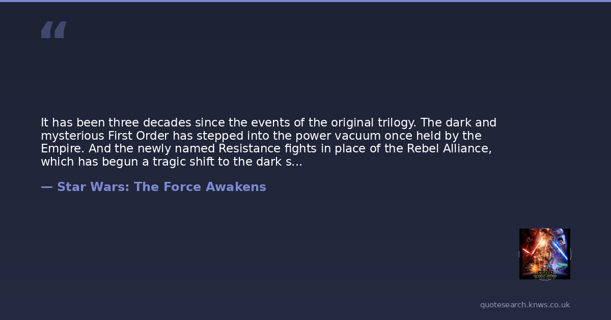 It has been three decades since the events of the original trilogy. The dark and mysterious First Order has stepped into the power vacuum once held by the Empire. And the newly named Resistance fights in place of the Rebel Alliance, which has begun a tragic shift to the dark side.