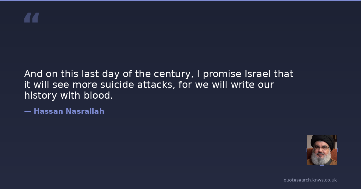 And on this last day of the century, I promise Israel that it will see more suicide attacks, for we will write our history with blood.
