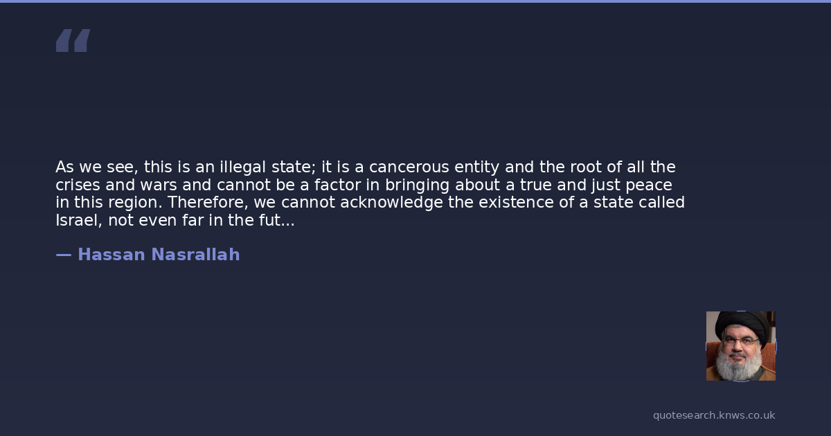 As we see, this is an illegal state; it is a cancerous entity and the root of all the crises and wars and cannot be a factor in bringing about a true and just peace in this region. Therefore, we cannot acknowledge the existence of a state called Israel, not even far in the future, as some people have tried to suggest. Time does not cancel the legitimacy of the Palestinian claim.