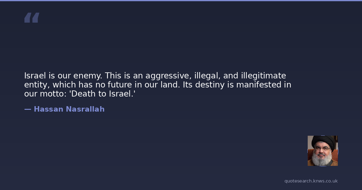 Israel is our enemy. This is an aggressive, illegal, and illegitimate entity, which has no future in our land. Its destiny is manifested in our motto: 'Death to Israel.'