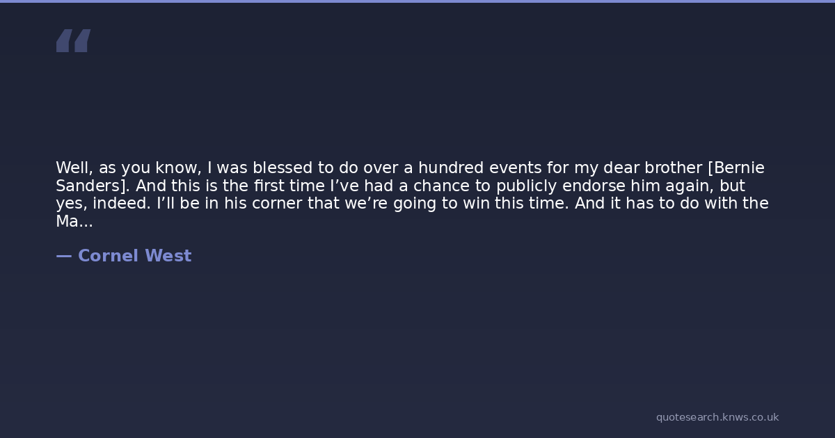 Well, as you know, I was blessed to do over a hundred events for my dear brother [Bernie Sanders]. And this is the first time I’ve had a chance to publicly endorse him again, but yes, indeed. I’ll be in his corner that we’re going to win this time. And it has to do with the Martin Luther King like criteria of assessing a candidate namely the issues of militarism, poverty, materialism, and racism, xenophobia in all of its forms that includes any kind of racism as you know against black people, brown people, yellow people, anybody, Arabs, Muslims, Jews, Palestinians, Kashmirians, Tibetans and so forth. So that there’s no doubt that the my dear brother Bernie stands shoulders above any of the other candidates running in the Democratic primary when it comes to that Martin Luther King-like standards or criteria.