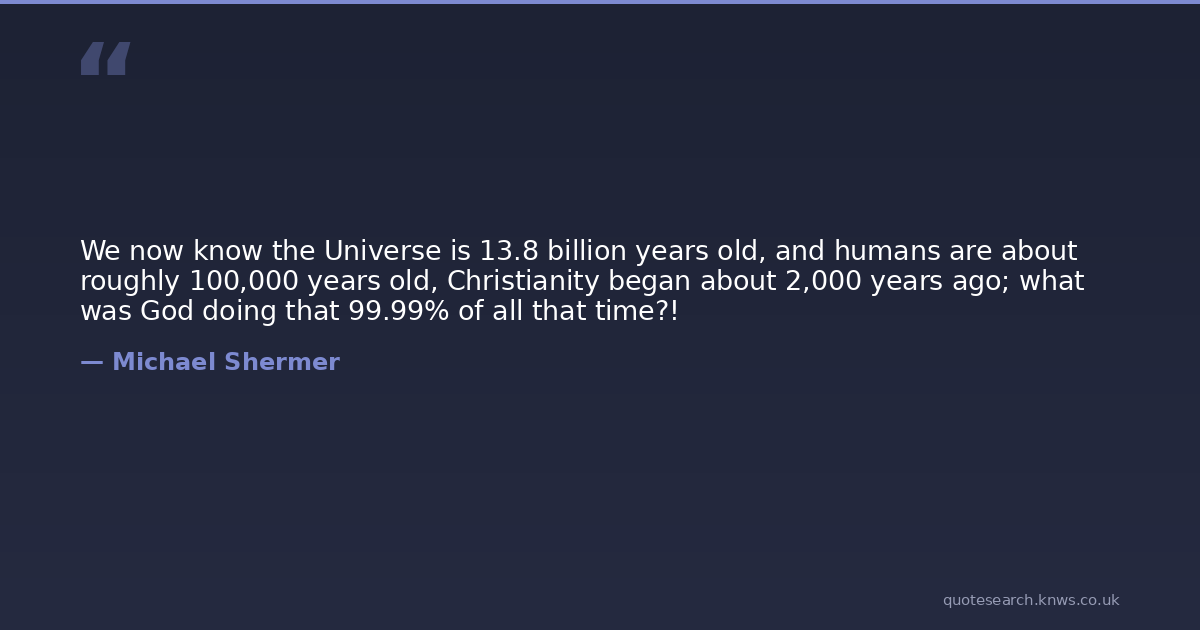 We now know the Universe is 13.8 billion years old, and humans are about roughly 100,000 years old, Christianity began about 2,000 years ago; what was God doing that 99.99% of all that time?!