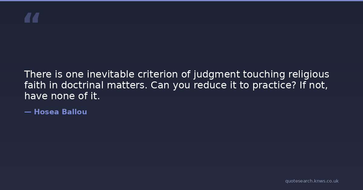 There is one inevitable criterion of judgment touching religious faith in doctrinal matters. Can you reduce it to practice? If not, have none of it.