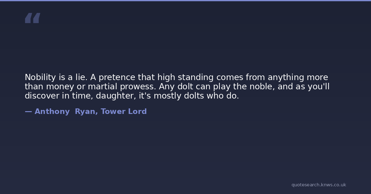 Nobility is a lie. A pretence that high standing comes from anything more than money or martial prowess. Any dolt can play the noble, and as you'll discover in time, daughter, it's mostly dolts who do.
