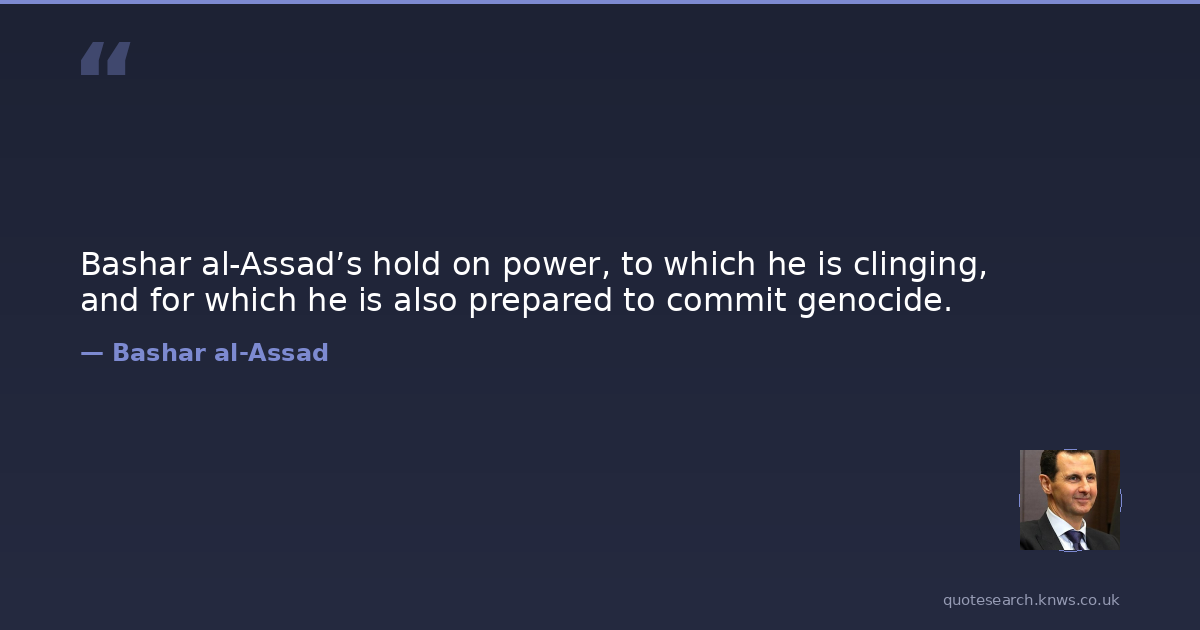Bashar al-Assad’s hold on power, to which he is clinging, and for which he is also prepared to commit genocide.