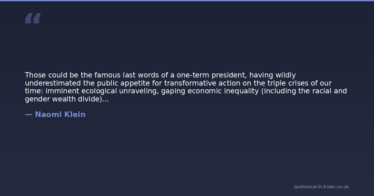 Those could be the famous last words of a one-term president, having wildly underestimated the public appetite for transformative action on the triple crises of our time: imminent ecological unraveling, gaping economic inequality (including the racial and gender wealth divide), and surging white supremacy.
