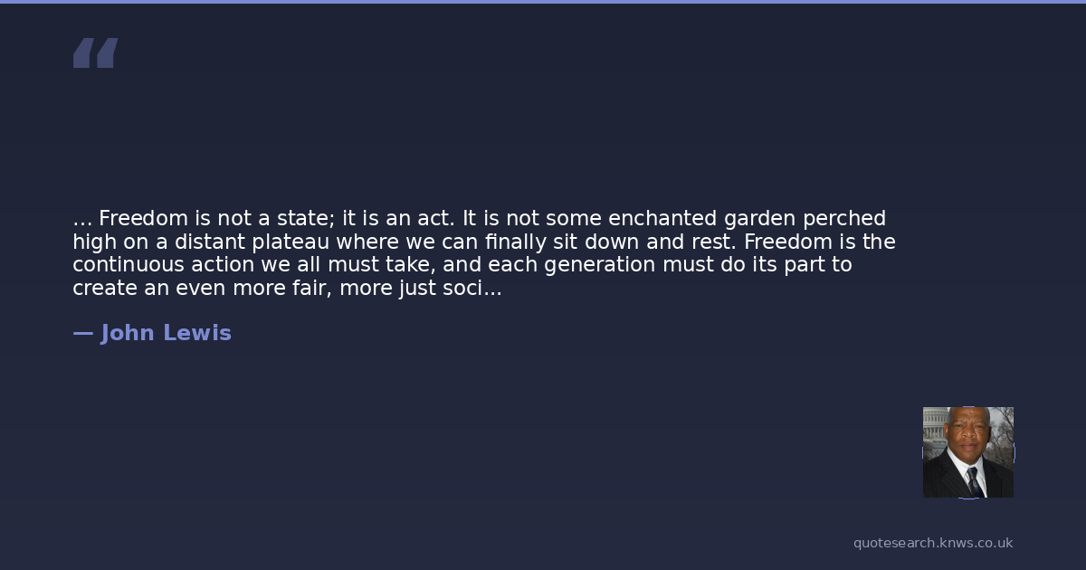 … Freedom is not a state; it is an act. It is not some enchanted garden perched high on a distant plateau where we can finally sit down and rest. Freedom is the continuous action we all must take, and each generation must do its part to create an even more fair, more just society.