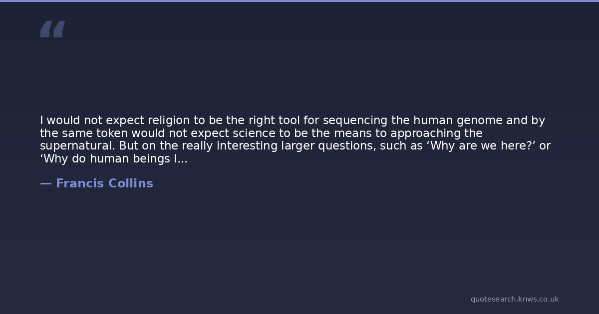I would not expect religion to be the right tool for sequencing the human genome and by the same token would not expect science to be the means to approaching the supernatural. But on the really interesting larger questions, such as ‘Why are we here?’ or ‘Why do human beings long for spirituality?,’ I find science unsatisfactory. Many superstitions have come into existence and then faded away. Faith has not, which suggests it has reality.