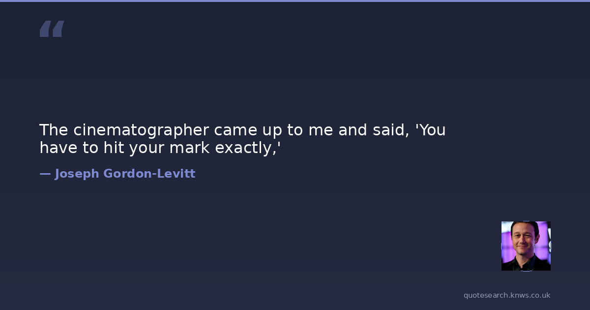 The cinematographer came up to me and said, 'You have to hit your mark exactly,'