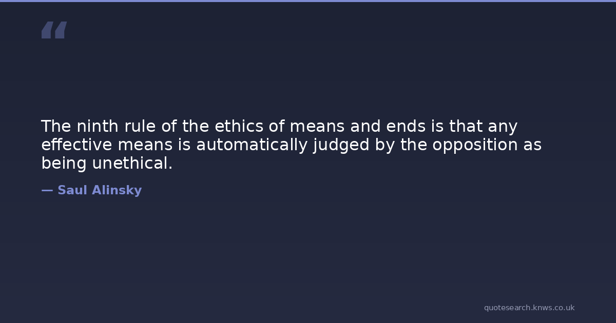 The ninth rule of the ethics of means and ends is that any effective means is automatically judged by the opposition as being unethical.