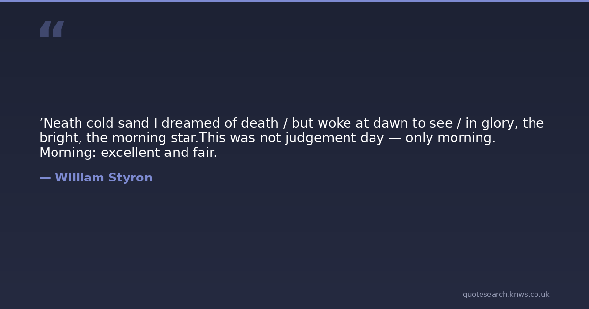 ’Neath cold sand I dreamed of death / but woke at dawn to see / in glory, the bright, the morning star.This was not judgement day — only morning. Morning: excellent and fair.