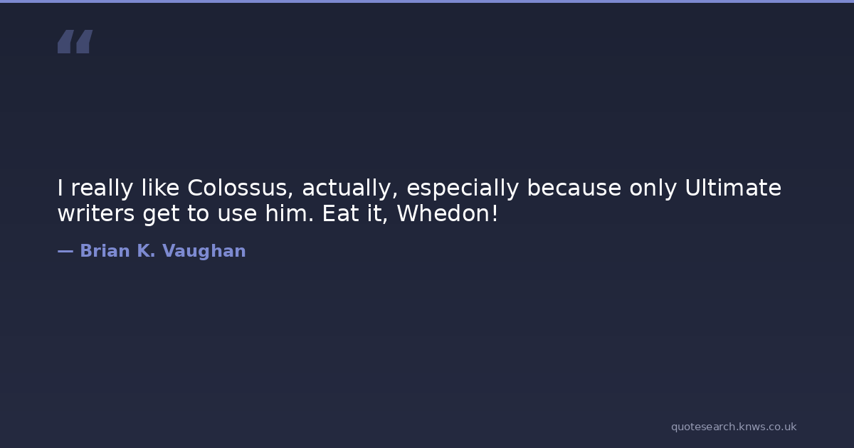I really like Colossus, actually, especially because only Ultimate writers get to use him. Eat it, Whedon!