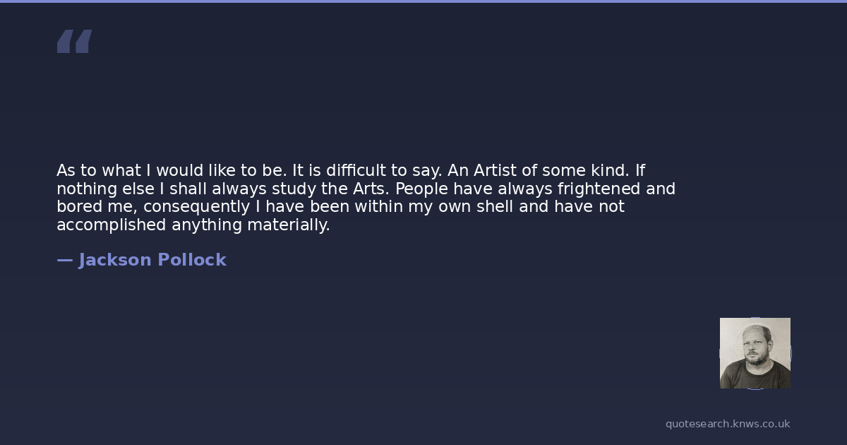 As to what I would like to be. It is difficult to say. An Artist of some kind. If nothing else I shall always study the Arts. People have always frightened and bored me, consequently I have been within my own shell and have not accomplished anything materially.