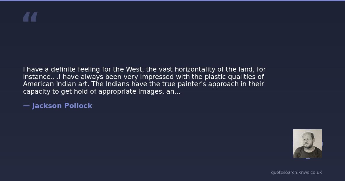 I have a definite feeling for the West, the vast horizontality of the land, for instance.. .I have always been very impressed with the plastic qualities of American Indian art. The Indians have the true painter's approach in their capacity to get hold of appropriate images, and in their understanding of what constitutes painterly subject-matter. Their colour is essentially Western, their vision has the basic universality of all real art. Some people find references to American Indian art and calligraphy in parts of my pictures. That wasn't intentional; probably [it] was the result of early memories and enthusiasm.