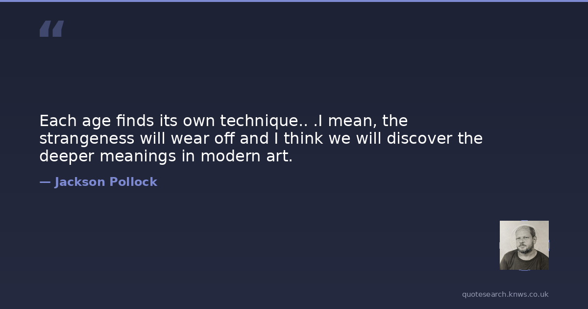 Each age finds its own technique.. .I mean, the strangeness will wear off and I think we will discover the deeper meanings in modern art.