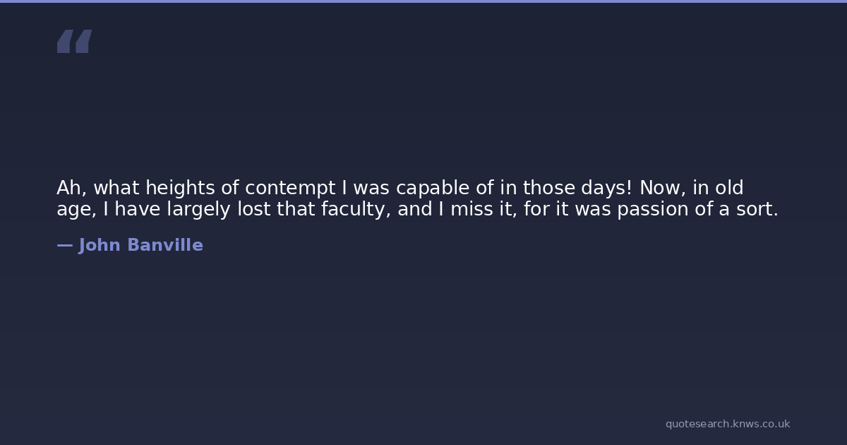 Ah, what heights of contempt I was capable of in those days! Now, in old age, I have largely lost that faculty, and I miss it, for it was passion of a sort.