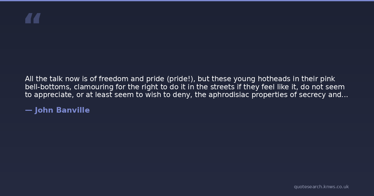 All the talk now is of freedom and pride (pride!), but these young hotheads in their pink bell-bottoms, clamouring for the right to do it in the streets if they feel like it, do not seem to appreciate, or at least seem to wish to deny, the aphrodisiac properties of secrecy and fear.