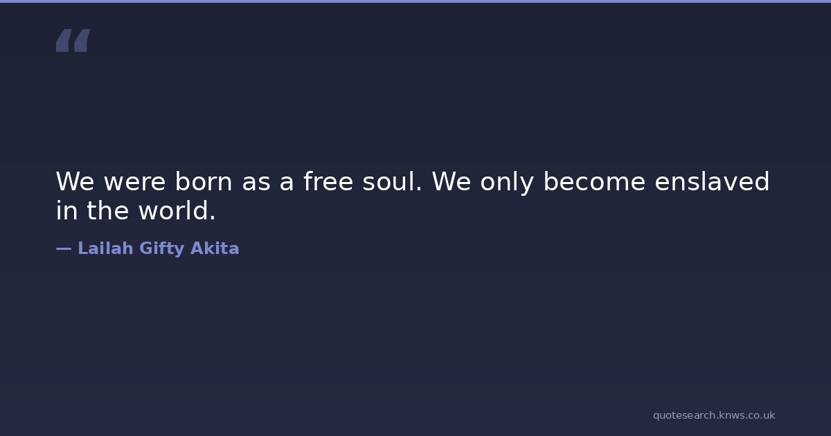 We were born as a free soul. We only become enslaved in the world. childbirth enslaved free inspiration slave soul wisdom Download Image Share on X Share on Facebook Copy Link