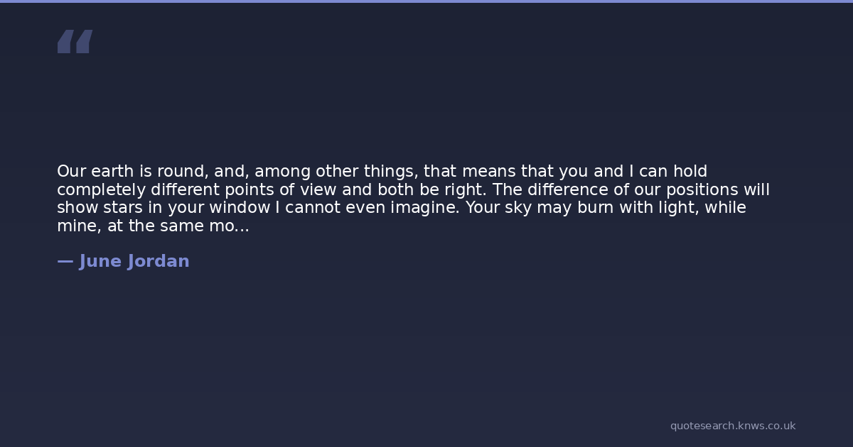 June Jordan was a 20th-century American poet, essayist, playwright, feminist, bisexual activist. June Millicent Jordan was an American poet, essayist, teacher, and activist. In her writing she explored issues of gender, race, immigration, and representation. Read more on Wikipedia →