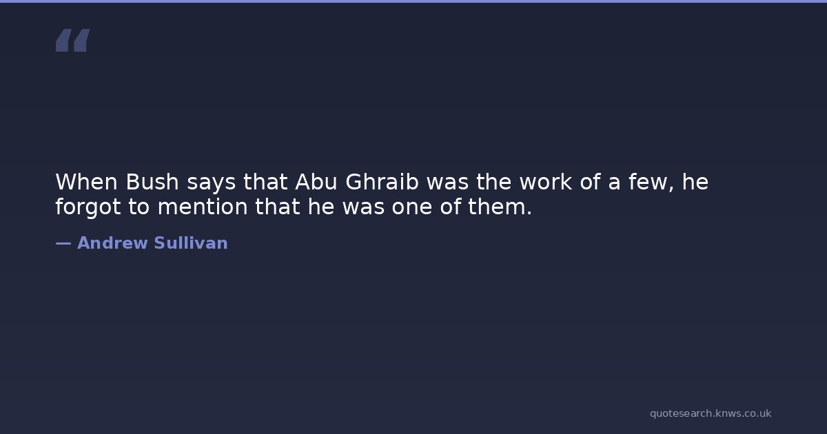 When Bush says that Abu Ghraib was the work of a few, he forgot to mention that he was one of them.