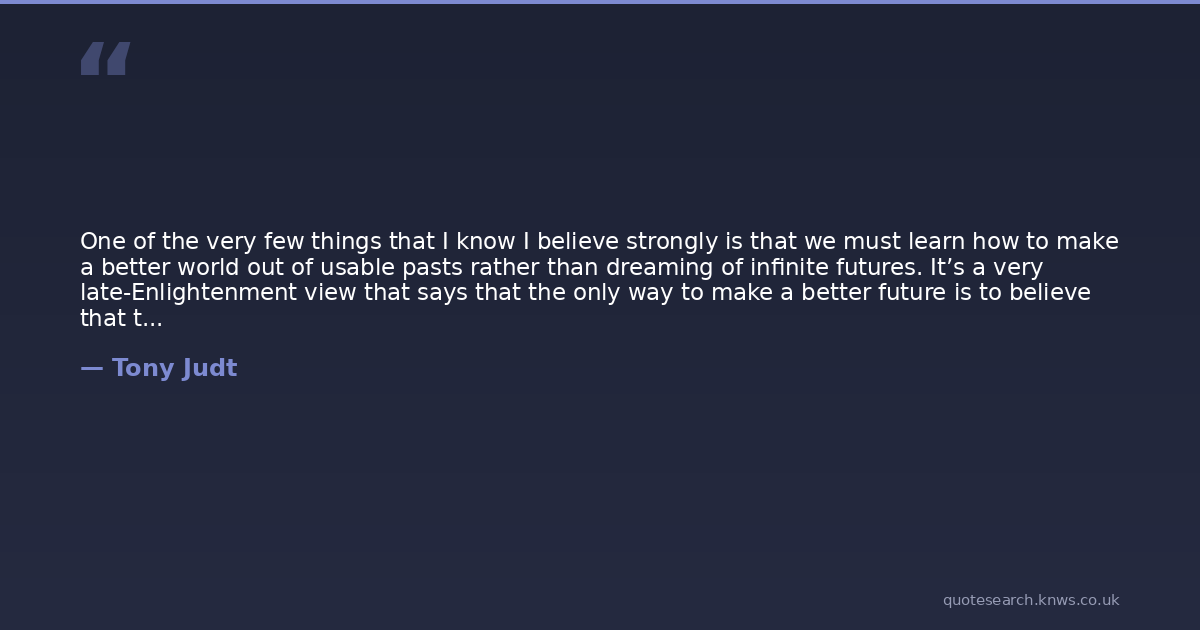 One of the very few things that I know I believe strongly is that we must learn how to make a better world out of usable pasts rather than dreaming of infinite futures. It’s a very late-Enlightenment view that says that the only way to make a better future is to believe that the future will be better. Smarter people than me used to believe very differently and I think it is time to listen to them once again.