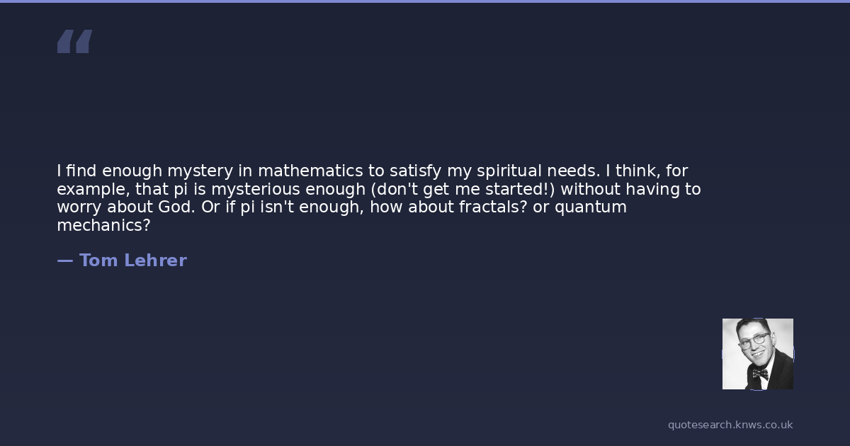 I find enough mystery in mathematics to satisfy my spiritual needs. I think, for example, that pi is mysterious enough (don't get me started!) without having to worry about God. Or if pi isn't enough, how about fractals? or quantum mechanics?