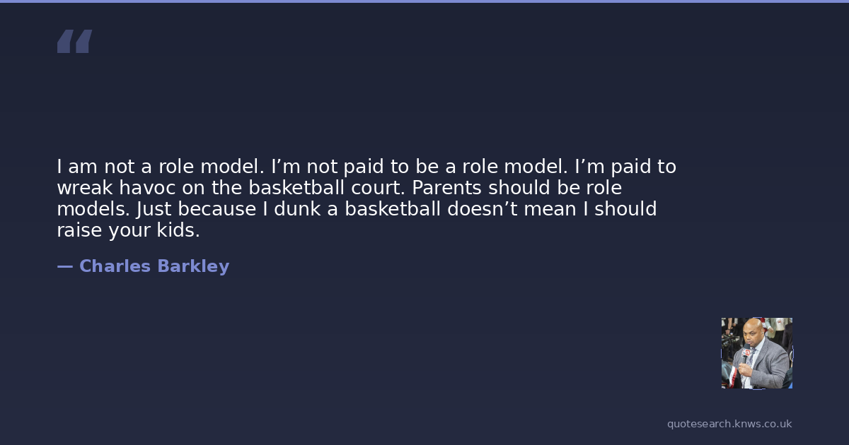 I am not a role model. I’m not paid to be a role model. I’m paid to wreak havoc on the basketball court. Parents should be role models. Just because I dunk a basketball doesn’t mean I should raise your kids.